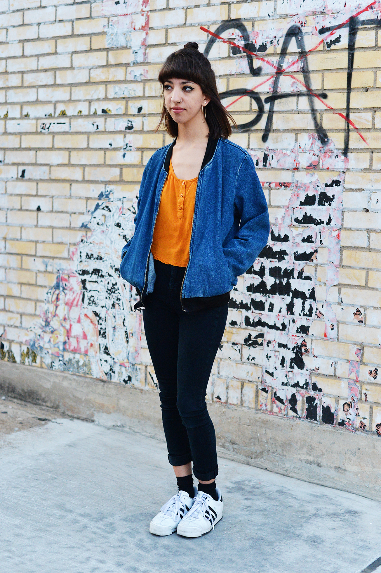 Wearing: BDG jeans and earrings from Urban Outfitters, jacket from American Apparel, Addidas shoes