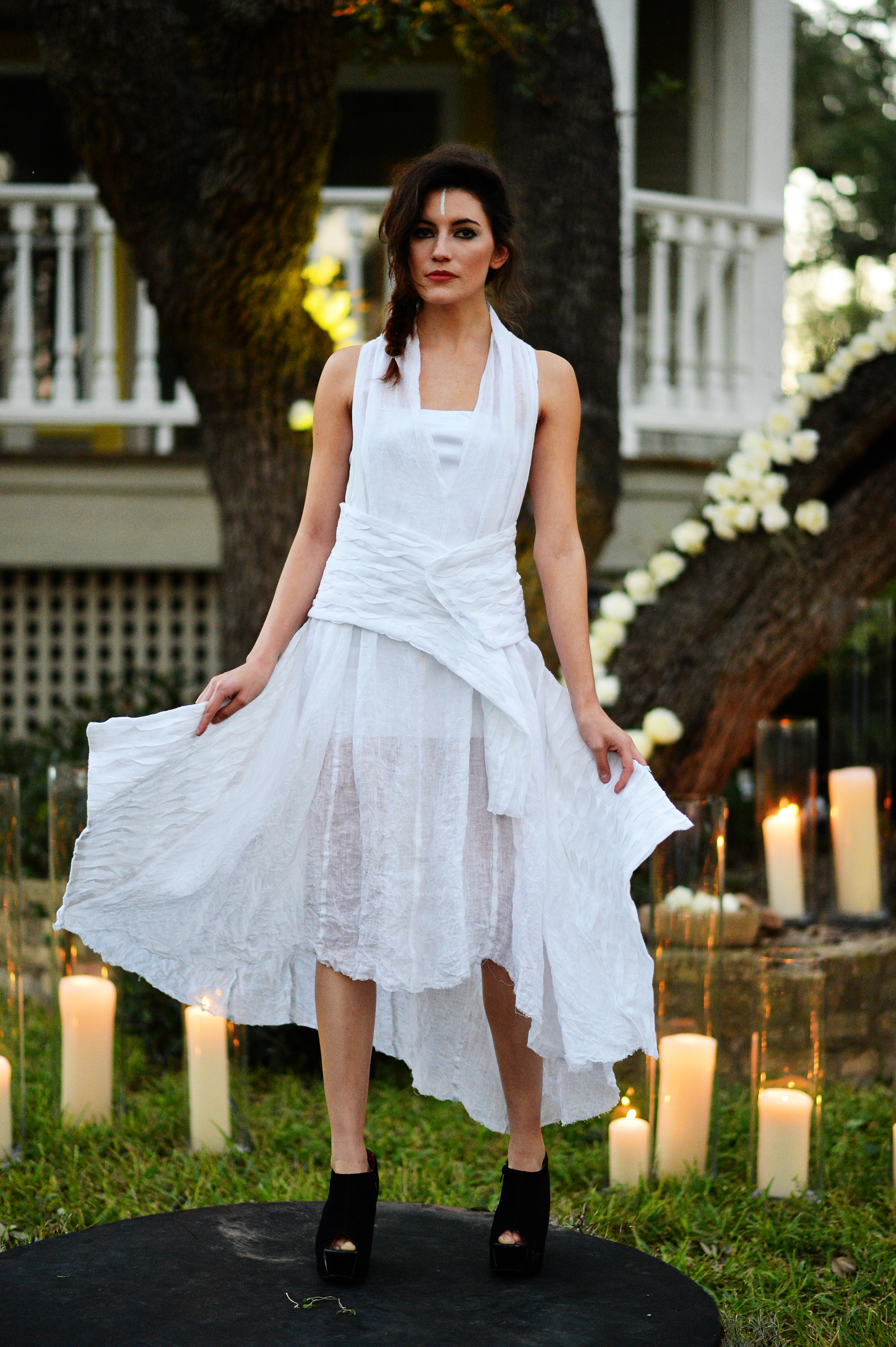 It was the night after Halloween. And although it would be fitting to say there was a ghostly feeling in the air in the backyard of the old Travis Heights home in which myself, along with the rest of Austin’s fashion enthusiasts, found themselves, it would be misleading to appropriate this feeling solely to the timing of the event. Because truthfully, Gail Chovan’s fashion shows always invoke a beautiful eeriness.